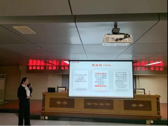 12月4日下午,黄色网址大全 王少林副总经理在龙鹏大楼8楼会议室主持召开了集团党委理论学习中心组第十九期(扩大)学习会。会议邀请龙华区政协委员、深圳市律师协会宪法和行政法专业委员会主任、深圳市法学会行政法研究会副会长刘南筠同志围绕 “12·4宪法日”作专题讲座。集团本部领导班子成员、各部门负责人,各辖属企业党支部班子成员、筹备组成员,党员代表、党务工作者及职工群众代表约60人参加了会议。