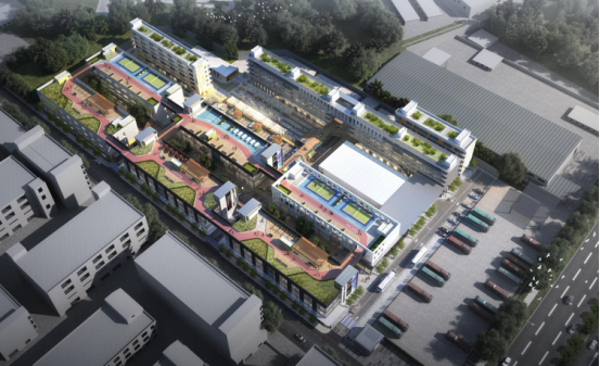 君新工业区项目位于观湖街道、观澜街道及龙岗平湖交界处,区位优势明显,拟对君新工业区约38,964平方米物业进行装修改造,改造后总面积41,764平方米,建成后园区包括人力资源服务(面积约23,500平方米)、技能人才培训(约7500平方米)和生活配套服务(约7900平方米)三大功能区。