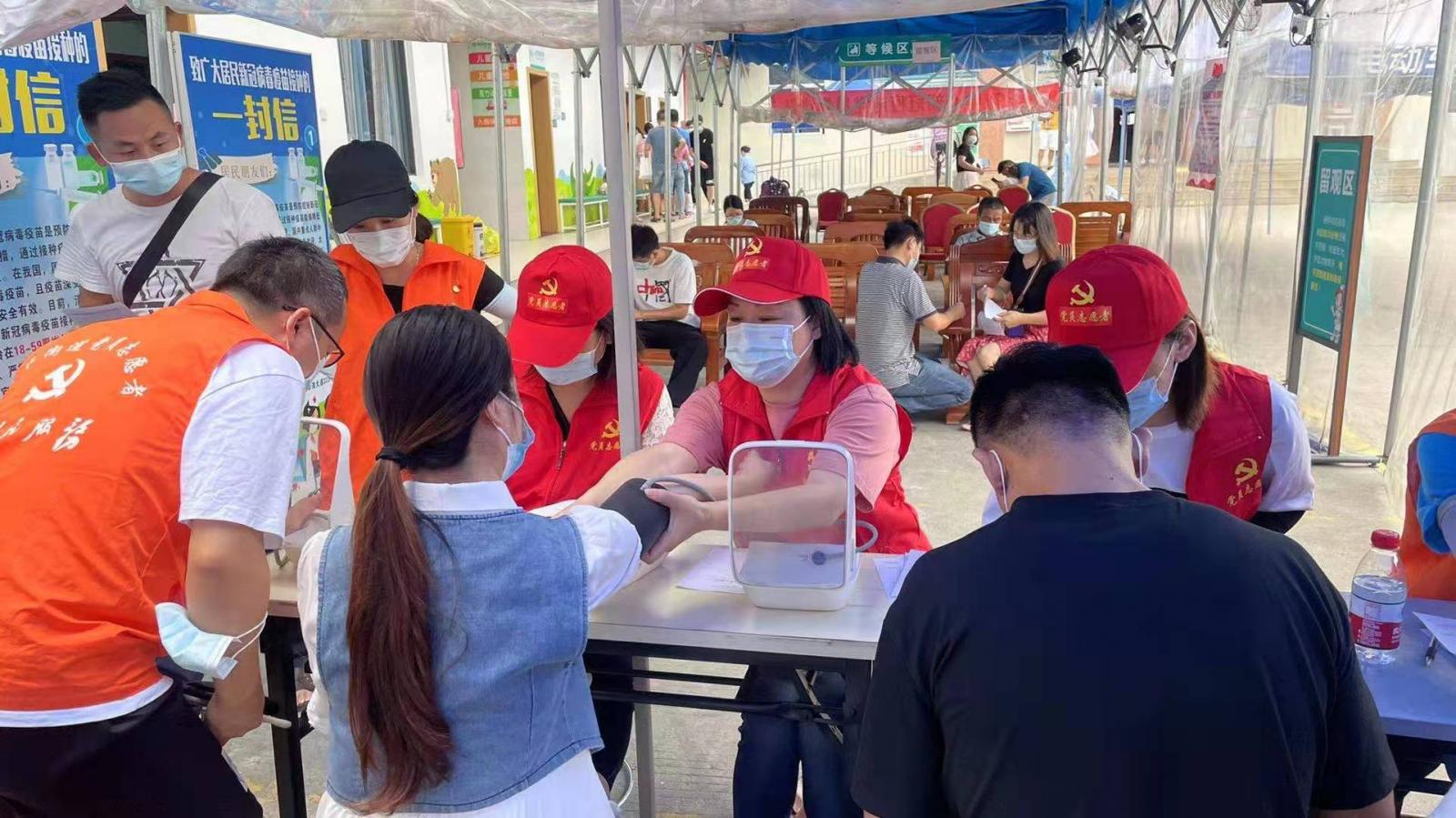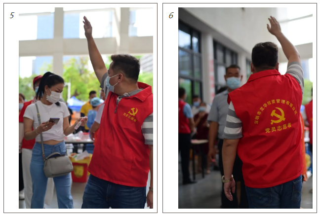 5月30日下午集团系统15名党员志愿者组成的志愿服务队,顶着烈日到龙华文化艺术中心核酸检测服务点,协助医护人员做好现场秩序维护、志愿引导、登记表格、核酸检测试剂发放等一系列志愿服务。
