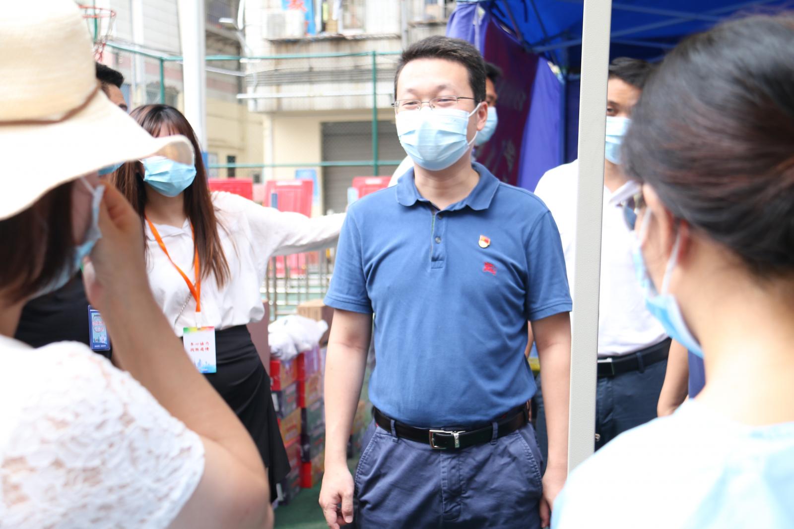 慰问过程中,张波同志向在30多度高温下身着隔离衣坚守岗位的志愿者们表达了关心和问候,对他们不惧困难挑战、坚守防疫一线的辛苦付出表示感谢,并叮嘱大家做好自身防护,做好防暑降温措施。此外,张波同志强调,在防疫一线志愿者无畏冲锋的同时,我们的后勤保障也要充足且持续,要及时补充保障物品,密切关注志愿者的身体健康情况,避免再出现中暑等身体不适状况,志愿者自身也要时刻注意补充水分、保持适当休息,察觉身体不适一定要及时休息、及时轮换。