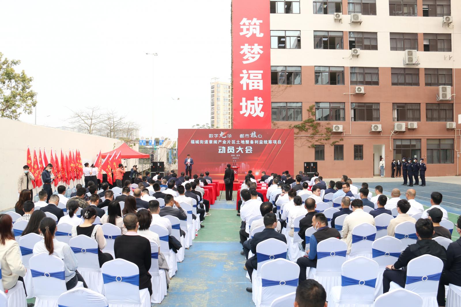 3月9日,福城街道章阁产业片区土地整备利益统筹项目现场指挥部揭牌仪式及动员大会隆重举行。
