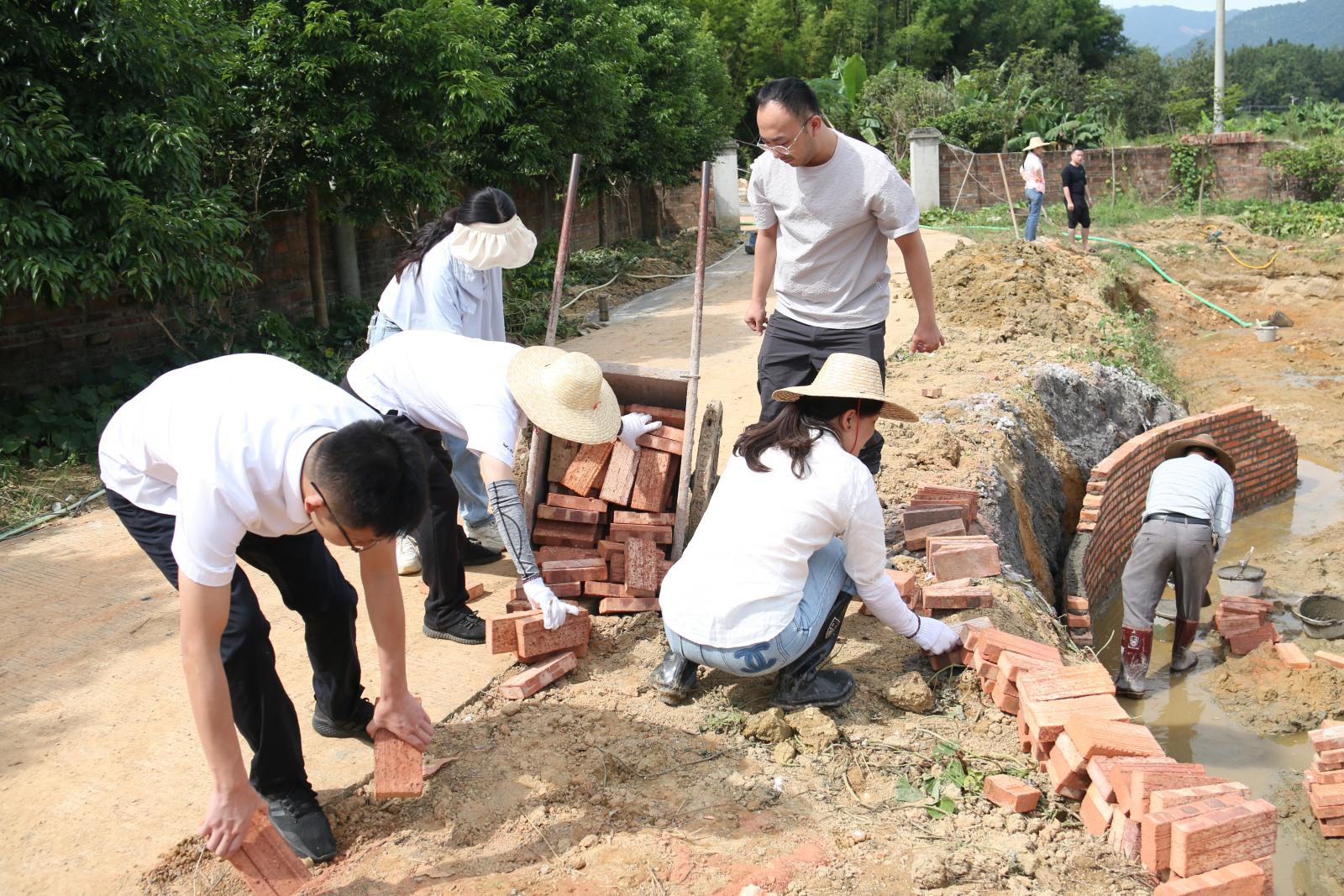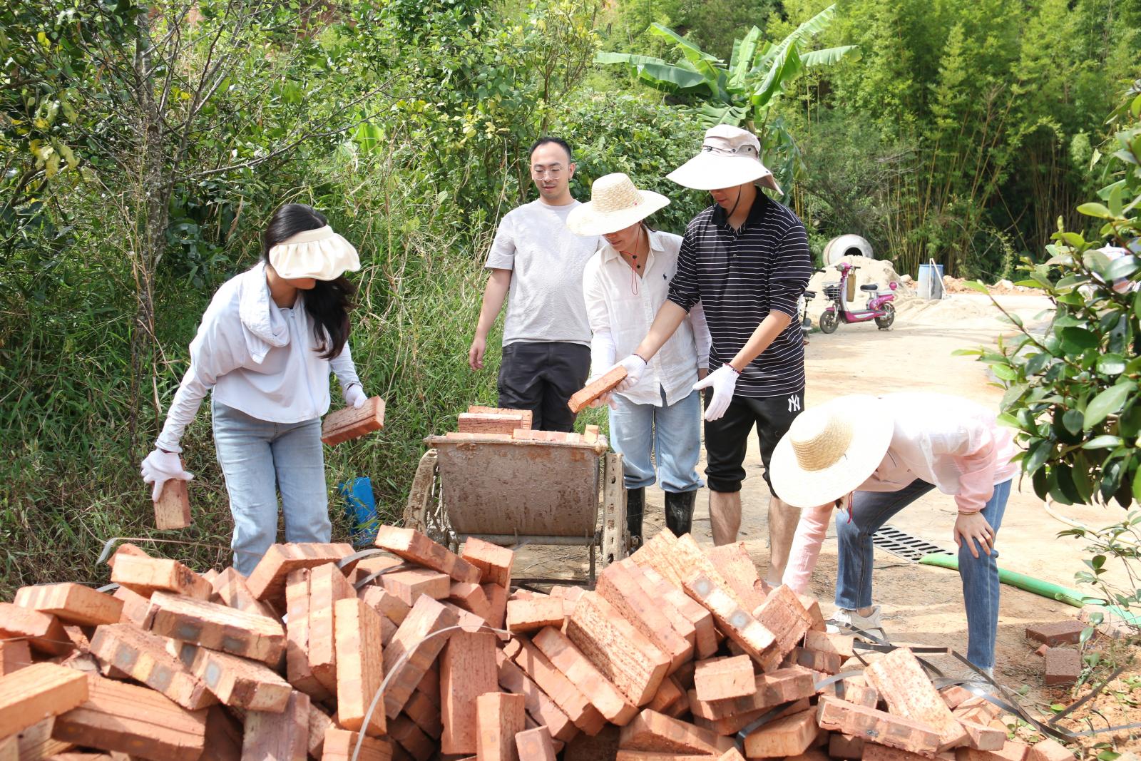 与此同时,学员们积极谋划、主动参与,真心实意为村民办实事,大家齐心协力,搬砖、运砖、和水泥,帮助村民修建鱼塘,测量、打钉、安装,一起将大幅书画挂上墙,学员们通过点点滴滴、实实在在的暖心行动,努力为人民群众办实事、解难事、做好事,以青年力量践行为民服务情怀。